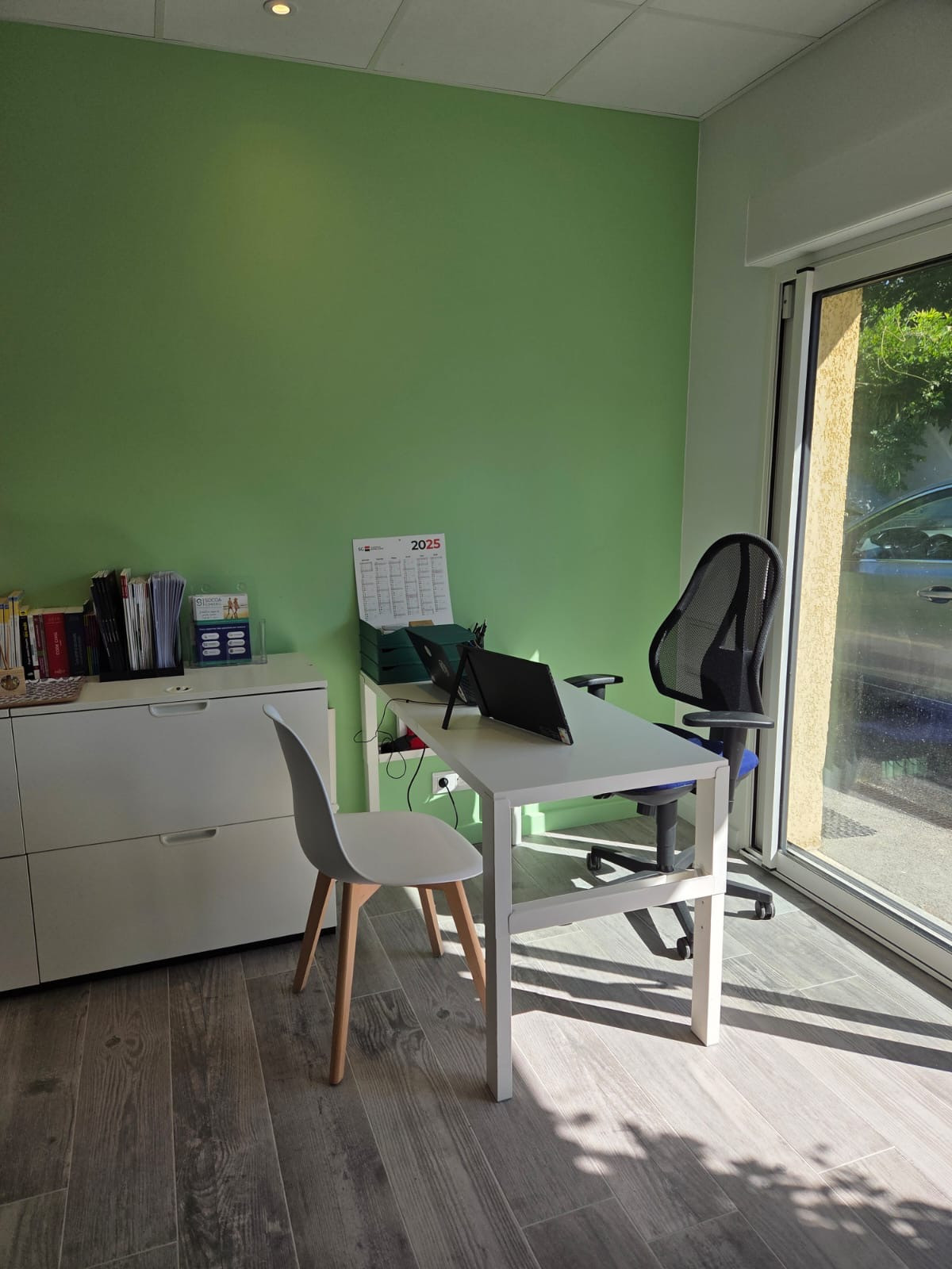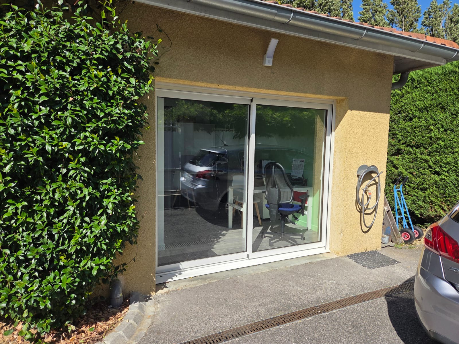 Projet d’aménagement avec ELIPSHOME maîtrise d’œuvre : un ancien garage transformé en bureau lumineux et fonctionnel.